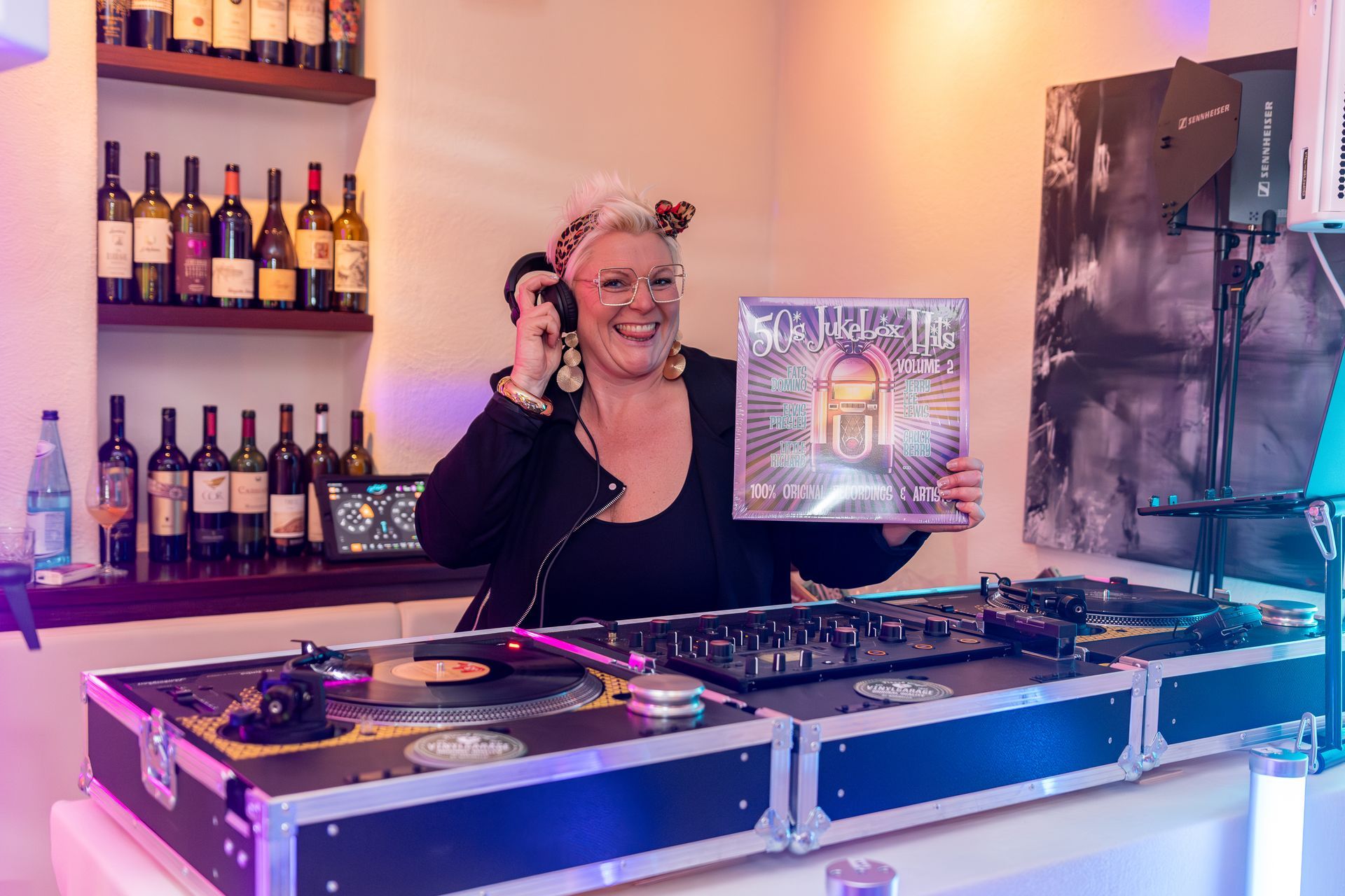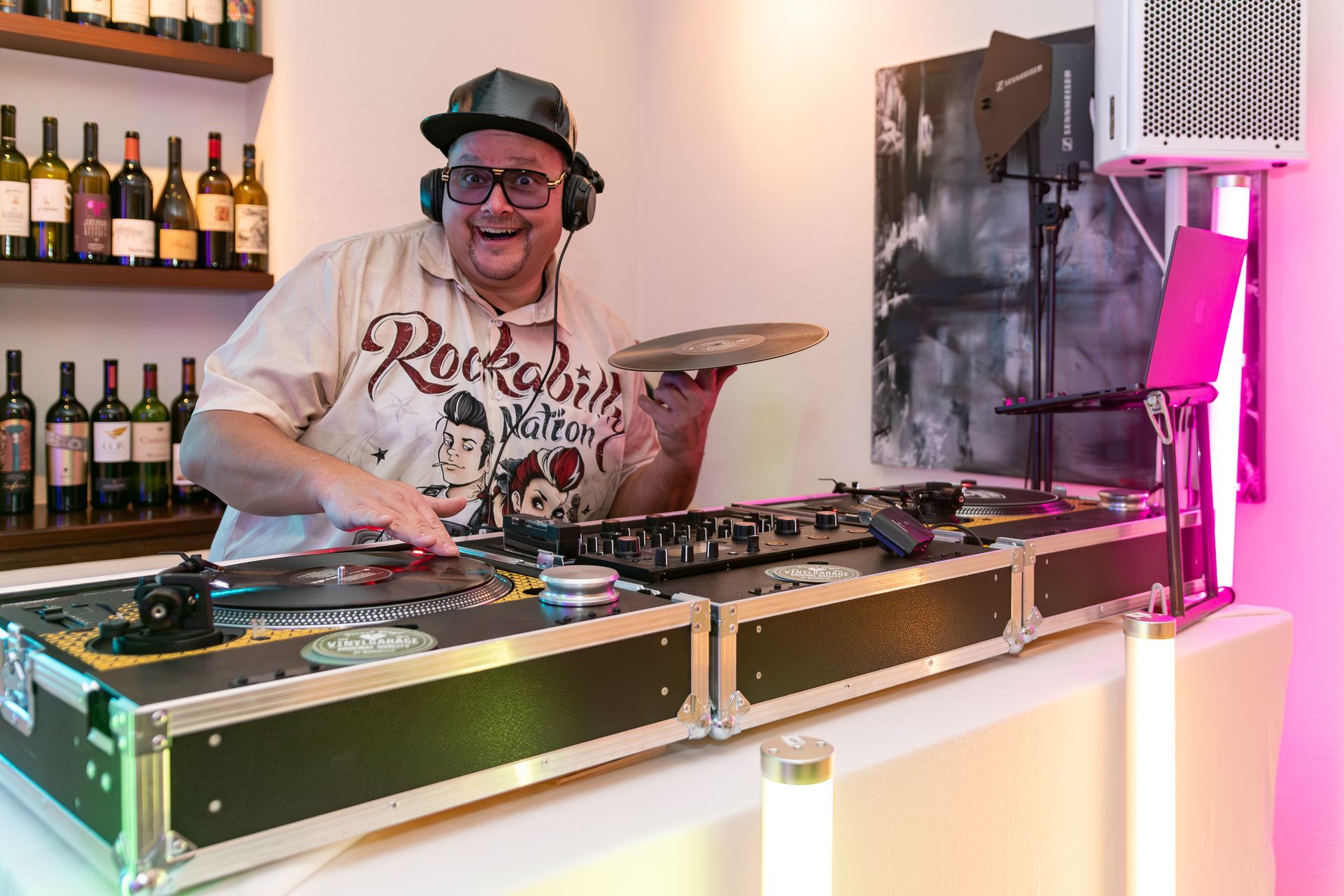 Vinyl-DJ für 50er Jahre Rock'n'Roll und Grease Party.