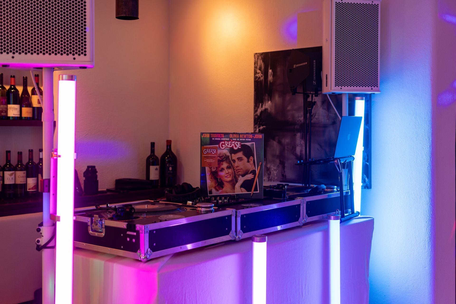 Wir bringen das komplette Setup mit: professionelle Turntables und Mixer. Auf Wunsch kümmern wir uns auch um Beleuchtung und Tonanlagen.
