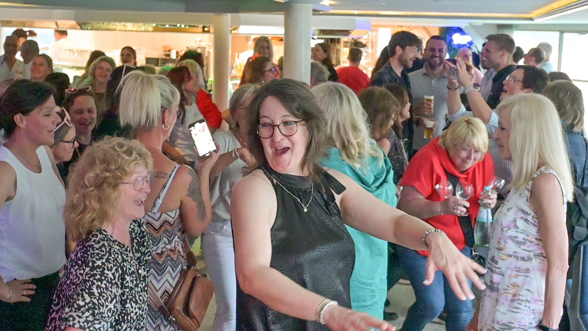 Das ist mir nebem einem tollen, feierwütigen Publikum vom Saisonopening der 80er und 90er Partyreihe auf dem Biggesee in Erinnerung geblieben: In der heutigen Zeit unterliegt Musik einem schnelllebigen Mechanismus aus "swipen" und "wischen" durch Playlisten diverser Streaminganbieter. Der Bezug zur Musik ist ein ganz anderer geworden. Um so schöner, wenn man als professioneller Vinyl-DJ die Musik wieder erlebbar und anfassbar machen kann. Jede Schallplatte in meinem DJ Koffer ist eine Geschichte. Vom damaligen Kauf der Scheibe, bis zu Stories, die diese Vinyl schon auf Parties erlebt hat. Ich kann kaum noch sagen, wie oft ich oder auch Gäste die Cover herausgezogen haben. Und genau an dieser Stelle entsteht etwas völlig faszinierendes! Gäste schwelgen in Erinnerungen. Sie nehmen sich auf einmal Zeit, die Titellisten auf der Rückseite zu lesen, sich mit der Freundin gleich an der anderen Plattenkiste auszutauschen "hey, schau mal hier, weißt du noch..." . Man spürt diese Entschleunigung vor der Plattenkiste. Genau jetzt wird Musik zum kulturellen Erlebnis. Musik wird mit allen Sinnen aufgenommen. In der Hand die nächsten Titel für die Party, im Ohr die Musik von der schwarzen Scheibe, gerade mit Feingefühl und von Hand in den Raum gebracht, um die Herzen der Menschen zu erreichen. Es gelingt. Die Partygäste feiern schon 15 Minuten nach Bording auf dem Schiff. Ich als Vinyl-DJ stecke schon mitten drin, den roten Faden längst gesponnen und immer Platz für den kulturellen Austausch an den Plattenkisten. Ein ziemlich zentraler Punkt auf der 80er 90er Party auf dem Biggesee in Olpe. Die Partyreihe mit mir als Vinyl-DJ hat sich mittlerweile bis nach Osnabrück und ins Münsterland herumgesprochen. Gäste mit mehr als 2 Stunden Anreise sind im Vorfeld gezielt auf der Suche nach einer 80er und 90er Party mit Herzblut, Atmosphäre und einem gewählten Publikum und buchen sich lange vor Veranstaltungsbeginn bei der Party ein. Willkommen an Bord der EMS Westfalen auf dem Biggesee in Olpe. Willkommen zur vielleicht besten 80er 90er Vinyl-DJ Party in NRW.
