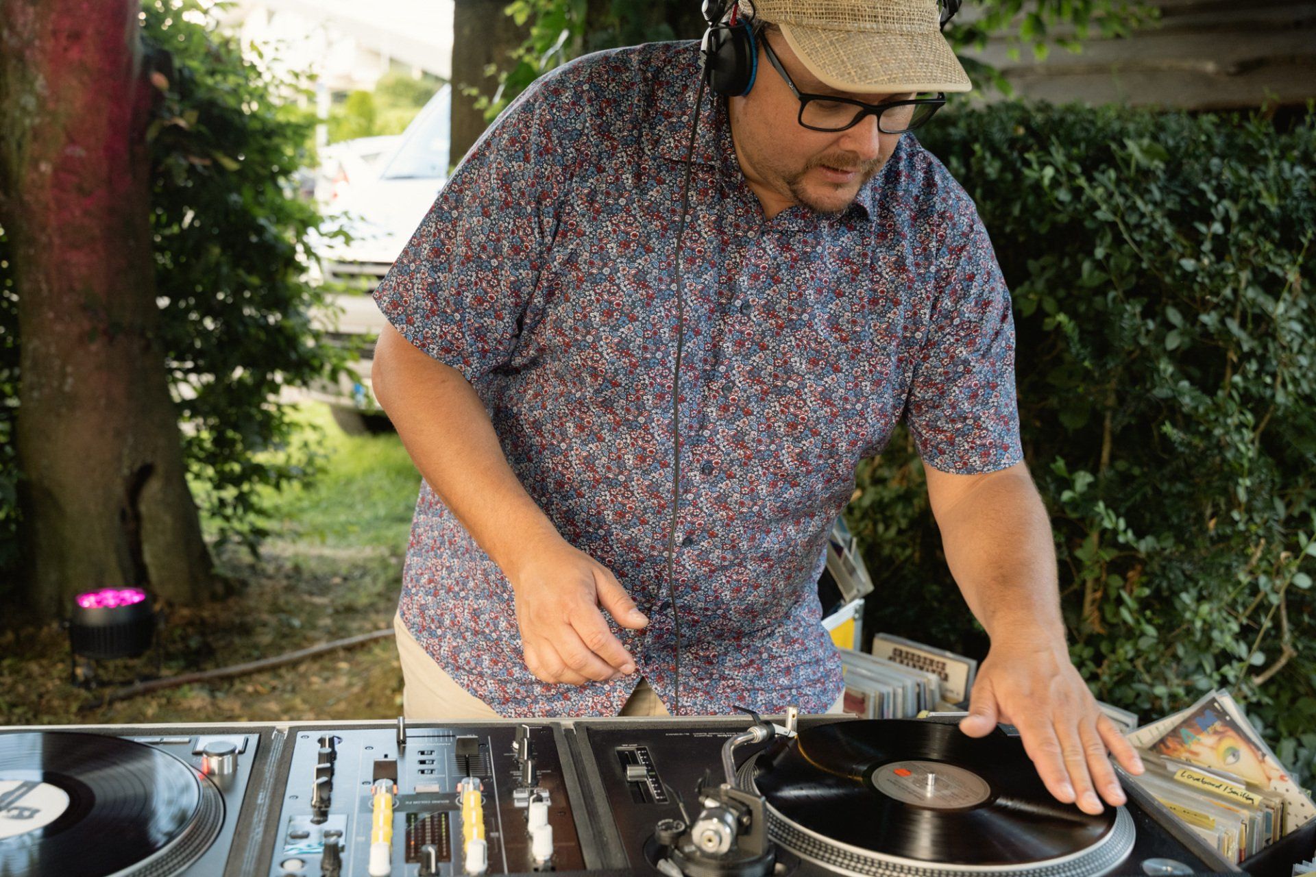 Vinyl-DJ in einem Biergarten