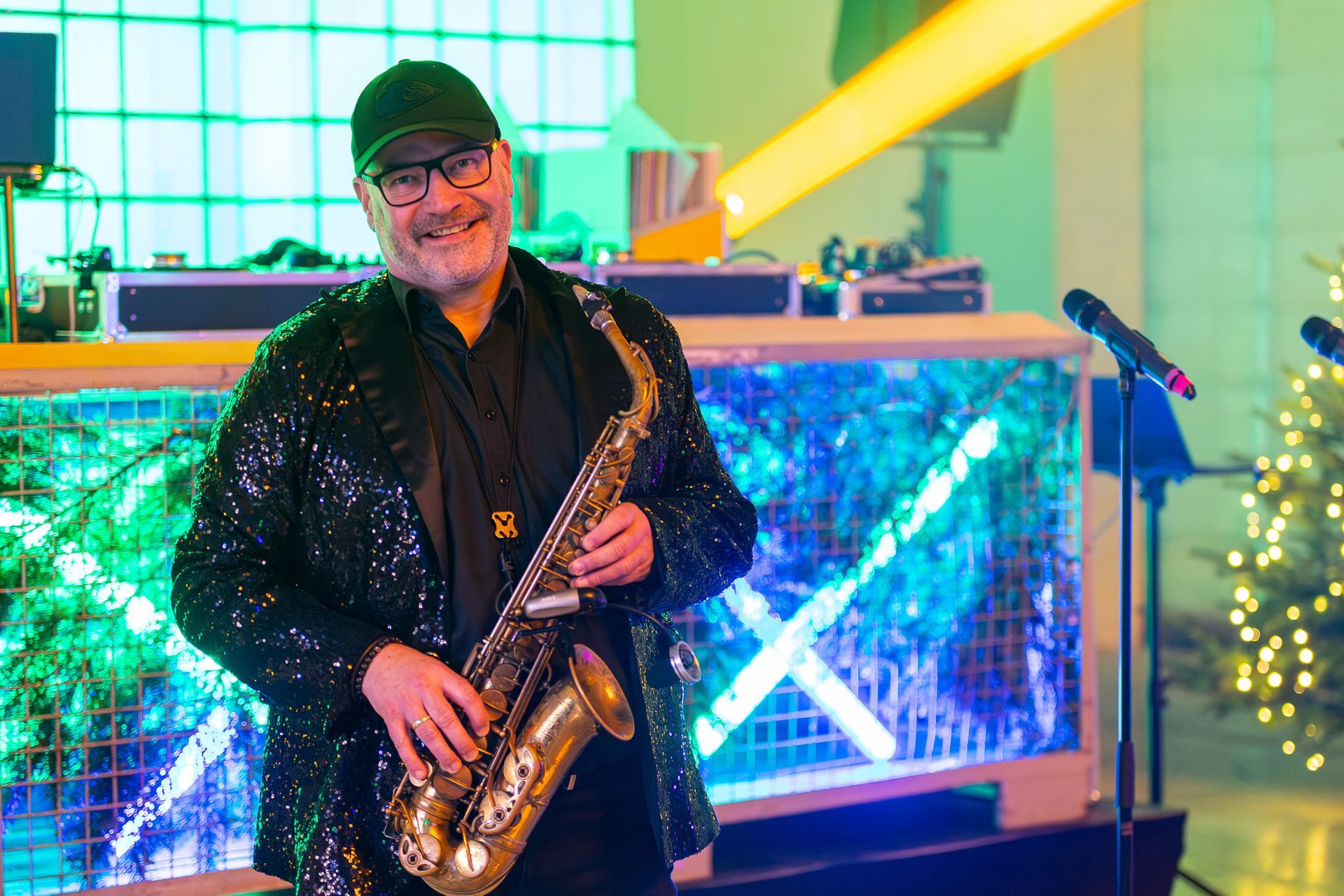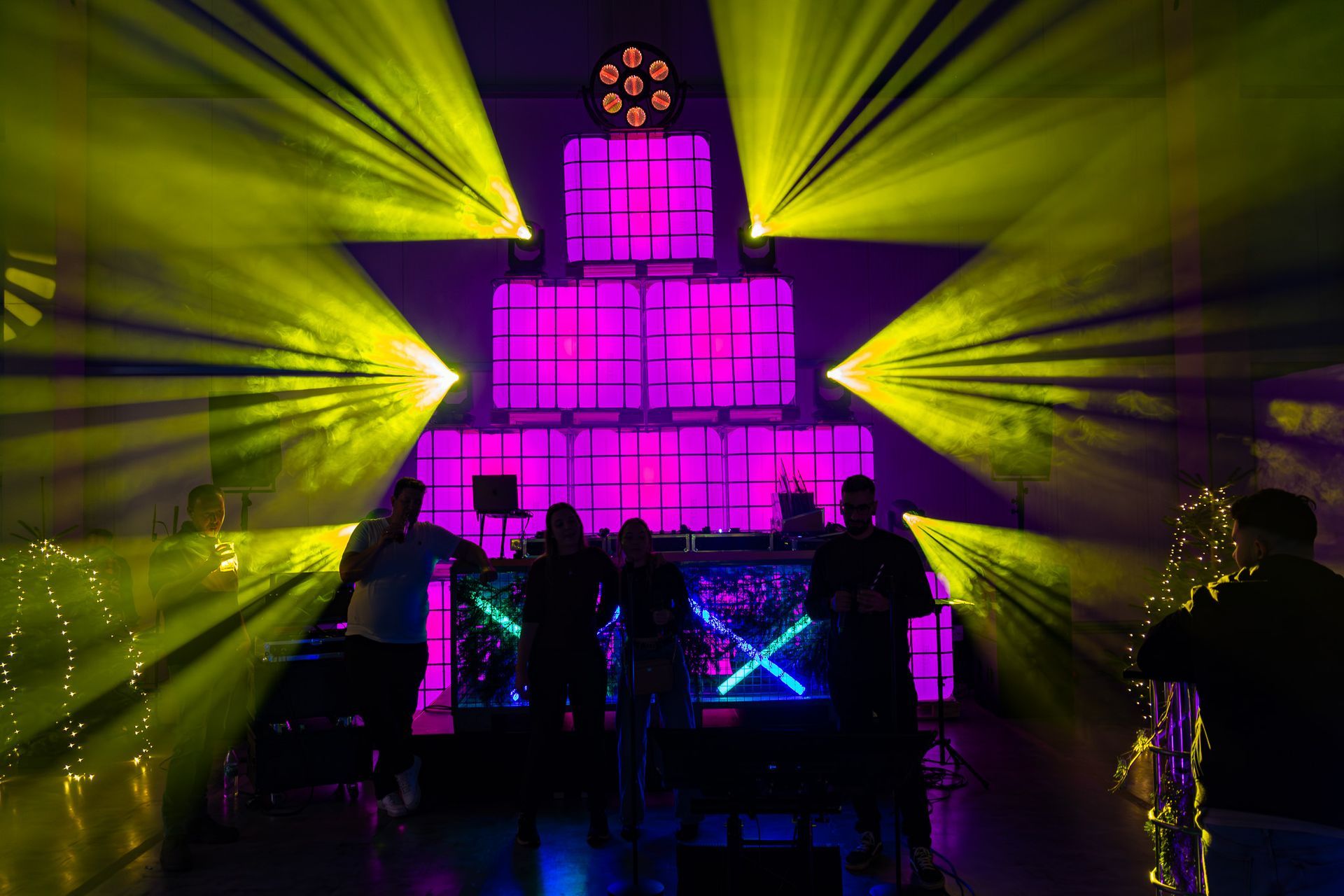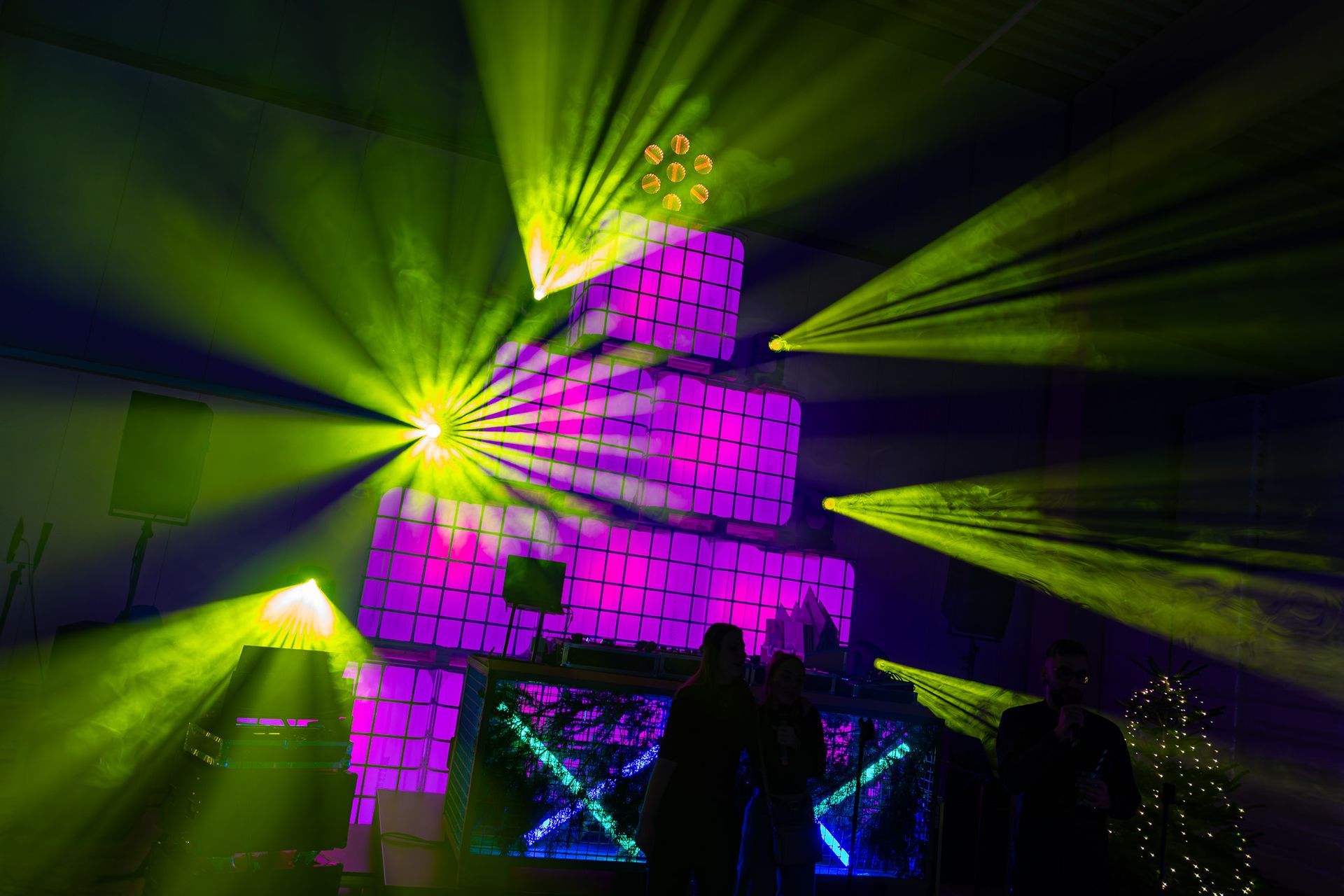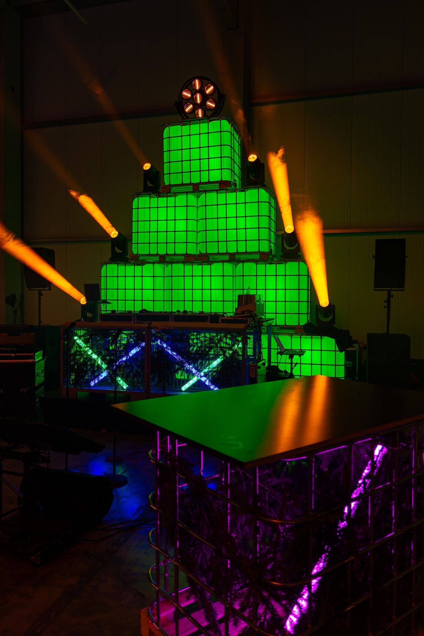 Besonders stolz bin ich auf unseren „technischen Weihnachtsbaum“: gestapelte, beleuchtete IBC-Container, bestückt mit leistungsstarken Movinglights als Kerzen und gekrönt von einem Roudman R1 als leuchtendem Stern. Ein echtes Statement-Piece mitten in der Halle.
